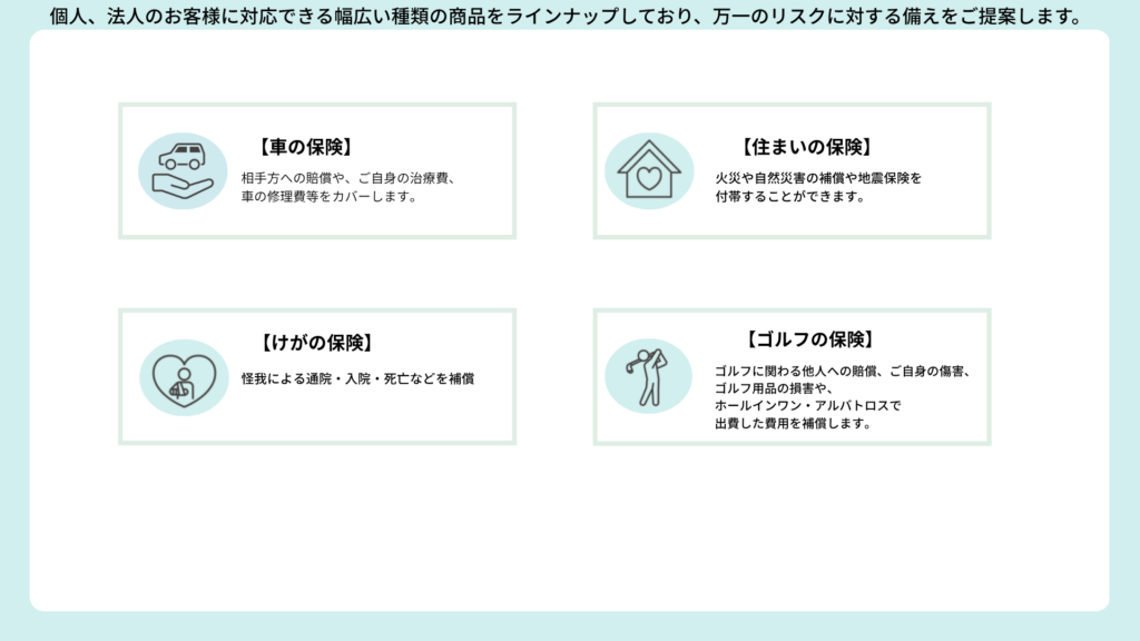 ●東京海上日動火災保険株式会社 (担当支社)福井支店 福井中央支社〒918-8558 福井市毛矢1丁目10-1 セーレンビル7F